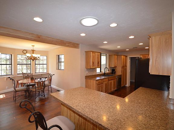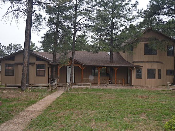 Amazing home in the pines. Sit on your deck overlooking the property with pine trees or cook a meal in the huge kitchen that has many cabinets and pantry. Enjoy a movie in the large living room or rest in any one of the large bedrooms. There are three large bedrooms with a bathroom for each in the main house with a studio apartment with a kitchen and fireplace upstairs. There is a kitchenette with a small table and chairs and fireplace in one bedroom and sitting areas in all three of the downstairs bedrooms. The apartment has its own private entry and the main house is all on one level. The property is fully fenced and has a place for parking or building a garage. This house must be seen to be appreciated.