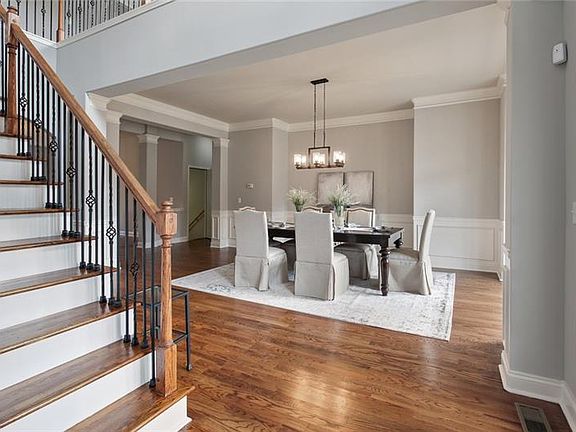 Immaculate custom built home with tons of upgrades! Light, bright, & open with neutral paint throughout. Bullnose/curved corners, high ceilings, refinished hardwood floors, arched entryways & lots of storage space. Separate dining room, office, & living room. Spacious eat-in kitchen features stainless steel appliances, large center island, double ovens, quartz countertops, and keeping room with fireplace. Large loft leads to oversized master suite w/sitting room and fireplace. Spa like master bath with a large closet. 2 laundry rooms - 1 upstairs and 1 downstairs. Generous sized secondary bedrooms with baths. Covered front porch, back deck, 3 car garage, & unfinished basement w/triforce open web joints in the ceiling. Great Roswell location near parks, trails, shopping, dining & great schools.