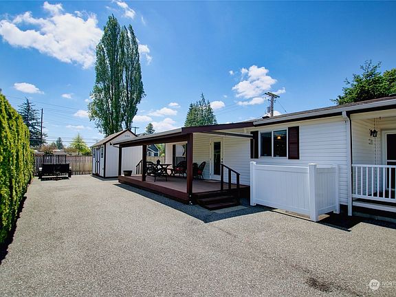 Ready to downsize, yet not give up on all the convenances you enjoy? Don't miss this updated 2bed/2bath home in the Burlington Hill Estates gated 55 park. Spacious private fenced yard with raised garden & shed. Paved driveway with ample parking, solid 10x12 storage shop with loft & 50 amp 220 power. No need to rent a storage unit here! Feel right at home as you enter into a light filled living room, kitchen offers chiefs dream 48" THOR gas range with double oven & hood, farm sink, Cortez countertops & custom pantry. Large primary bedroom with full bath. Additional bedroom or office opens up to large covered patio for additional outdoor living space. Great location near all amenities on dead-end street. RV storage offered in park!