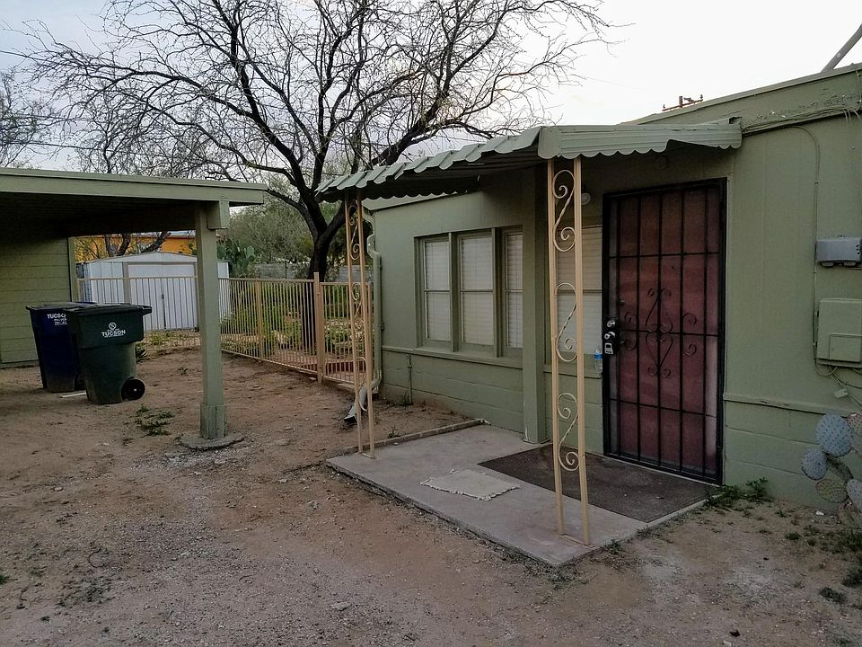 For rent is a one bedroom 650 sq. ft duplex unit. This rental features an efficient central AC and gas heat system, high-efficiency water heater, beautiful polished concrete and tile flooring and recent bathroom remodel and kitchen upgrades. It also includes a back patio, washer and dryer hookups and off-street parking with carport and storage. Very pet friendly unit with dog door and fenced back yard. This property is well maintained yet still maintains the charm of a 1940s southwest home. Close to the University of Arizona, shopping, Mountain bike path, and Banner Health Center. One year lease. Owner pays for trash, sewer and water. Tenants responsible for gas and electric utilities. Must have a minimum credit score of 640