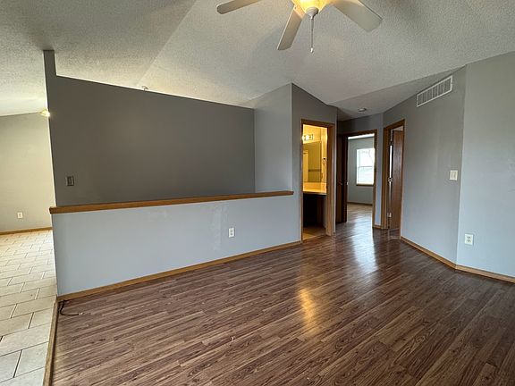This 4 bedroom, 2 full bath duplex with 1770 sq. ft. of living space features newly installed laminate floors throughout and newer paint. 4 bedroom units with 2-car garages at this price can be a rare opportunity. The floorplan includes 2 bedrooms upstairs along with a spacious living room, 1 full bathroom and good sized kitchen. The basement includes another living space, two more bedrooms, full bath, laundry, and storage. No neighbors behind you. The sprinkler system on an irrigation well ensures the yard looks great all year long. Tenant is responsible for lawn care and all utilities. Two pets under 25 lbs will be permitted with approval by management company subject to a $250/each NON-refundable pet fee and $25/each per month rent increase. The yard is not fenced. Applications will be available at showings.