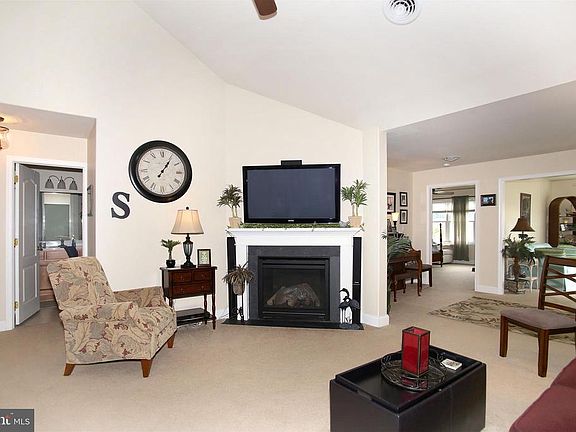Move in Ready! Delightful Tiffany 1floor villa features cathedral ceiling, gas corner fireplace, sunroom, maintenance free deck with manual retractable awning, lower level patio & stone paver front porch. Upgrades include custom window shades, light fixtures & floor coverings. All appliances including front load washer & dryer are less than 3 years old (except dishwasher). Additionally, the flat screen wall mounted TV above the fireplace can also stay. You will be delighted with the large master bedroom with spacious bath that includes double bowl vanity & walk in closet. Guest bedroom has private entrance to full bath. Storage is no problem with the additional shelving in the 2 car garage and pull down steps to floored area. Stay as busy as you want in this community. Multiple activities & planned trips at the community center to enjoy...indoor pool, billiards, fitness room,, bocce, card games, library, stitching, puzzles, dinners, dancing and more....Alden Place is a 55+ Land Lease Community.