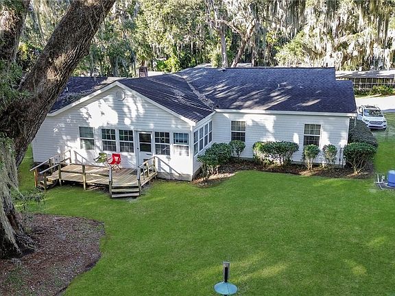 Motivated Seller! Selling As-Is. Charming Shellman Bluff Home with 2331square feet and 9 ft ceilings throughout is 2 minutes from the Julienton River and Shellman Fishcamp marina and docks. The original 1942 cottage was renovated in 2004 and a new addition of a Grande Primary Bedroom, bath, laundry and sunroom added. Fall in love with this home's screened front porch and awning that retain the Fish Camp Cottage Charm. Come home from a day of work or fun and enjoy the spacious floor plan and outdoor living space. Large Living Room with Fireplace. New HVAC system in 2017. Lots of cabinet storage and counter space in the kitchen and a new LG Refrigerator. Multipurpose laundry room for extra storage or play area. The dining area opens up to the heated/cooled sunroom for additional entertaining and enjoyment. With a flowing floor plan, the Primary Bedroom is a wonderful space with a nook area to use as an office or whatever fits your lifestyle also a walk-in closet and dressing area. Separate vanities, walk in shower and whirlpool bath. New well & Septic in 2004. Vehicle/boat Canopy with concrete pad for parking. Landscaped yard, irrigation, and Live Oak Trees to enjoy the bird watch. In addition, a chain link fence around back and sides of yard. Perfect location and property for primary residence or vacation Home.