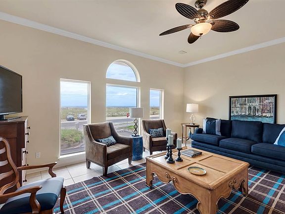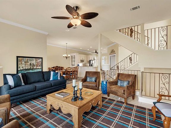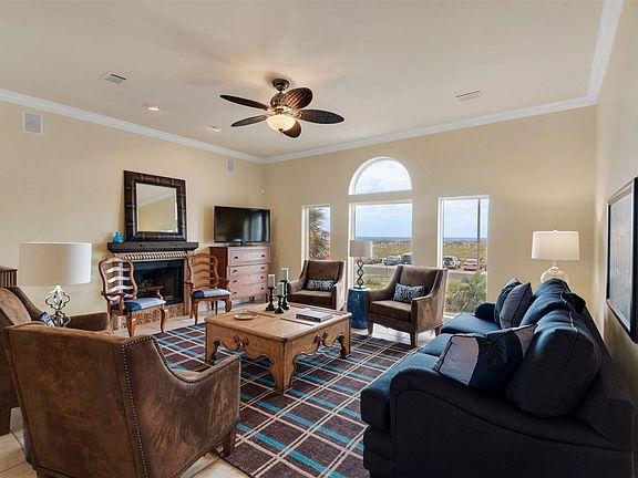 This impressive residence offers one of the most desirable locations on the island! It affords you the option of docking your boat in the marina behind your home, walking across the street to a world class beach, walking to one of the most popular restaurants in the area, taking a short drive to Historic Downtown Pensacola, or simply enjoying the amazing water views while at home. The exterior features many of the best products available for island construction including hardy plank siding and a standing seam metal roof that was replaced in 2016. You will find high ceilings, rounded corners, numerous windows with transoms, decorative metal stairway railings, tile flooring, crown molding, built-in ceiling speakers, and a fireplace with Peter King Ceramic surround on the inside. The highlights of the kitchen are a center island, granite countertops, built-in seating area in breakfast nook just off kitchen, breakfast bar, pantry, custom cabinet features, and easy access to balcony for outdoor dining. Enjoy breathtaking views, a private balcony overlooking gulf, jetted tub, separate shower with frameless glass surround, ceiling fan, spacious walk-in closet, and custom built-ins in the upstairs maser suite. The downstairs guest suite with a bedroom and sitting room could serve many other purposes if 4 bedrooms are not needed. Two upstairs guest bedrooms share access to a bath and spacious sun porch. Four total balconies provide plenty of opportunities to enjoy outdoor island living. If you are seeking water views, quality construction, and accommodations for a boat, look no further! The furniture that is in the house is owned by a third party. It can be rented under s eparate agreement for $450 a month, which would be in addition to the $4500 monthly rent payable to the owner of the house.
