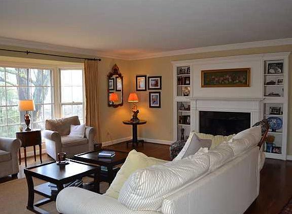 This comfortable one level 5 or 6 bedroom, 4.5 bath brick home over a full basement is perfect for family and entertaining and offers nice sized rooms throughout. The main level boasts an inviting foyer, an oversized living room with gas fireplace, built-ins and large bay window, a formal dining room with French doors to the new rear stamped concrete patio, a nicely appointed kitchen with beautiful cabinetry - some glass-fronted -as well as 4 bedrooms and 2.5 baths including the generous master bedroom with walk-in closet and private master bath. You will love the lower level which features an enormous family room with woodburning fireplace and built-ins, a laundry room, 2 full baths, a bedroom and a bonus room that could also be used as a 6th bedroom or even an office. The large double ba