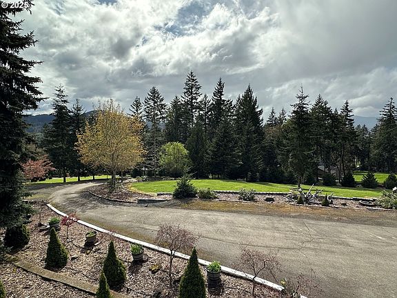 Very rare secluded 4.5 acre estate in gated community! This home is impeccable with tons of updates and no deferred maintenance! The main floor has solid Doug Fir flooring totally refinished to new condition in April of 2025, and all the bedrooms have brand new carpeting! Home has three spacious bedrooms on main level, and the possibility of a fourth downstairs on the daylight level. There are three bathrooms all with tile floors and two with brand new granite topped vanities, the master dual vanity has an exquisite marble counter. Features large open kitchen with island, granite counters and all appliances including a gas range, and freestanding refrigerator. The lodge style, timber frame construction is stunning with open beams and wood ceilings. The Heat-Pump system was all new in 2015, but is seldom used due to insulation value and pellet stove use, yet offers central air for those warm summer days. The hot water is continuous with a tank-less system run on propane. Outside is a dream with wrap-around driveway providing stair less entry on both levels. Includes large 27X25 shop with woodstove and 1/2 bath, and a second 25X25 detached garage. There are 200 cedar trees planted around the perimeter, and are numerous fruit bearing trees including 5 Bing Cherry, 2 Peach, 2 Apricot, 2 Plum, 2 Apple, 2 Pear, 2 Fig, and raspberries! Enjoy the amazing valley views from your wrap around deck or relax around the fire pit or a soak in your hot-tub! There is ample space for your vehicles, including a covered carport, and 2 separate RV hookups. The home had new windows installed in 2024, a new 30 year roof in 2015, and fresh exterior paint in 2022. To top it all off a custom $42,000 solar system featuring 35 350 watt panels was installed and paid in full in 2024, providing amazing energy savings with an average electric bill of $15.00/month. To see this gem is to appreciate it! Call today for your private viewing, this one won't last!