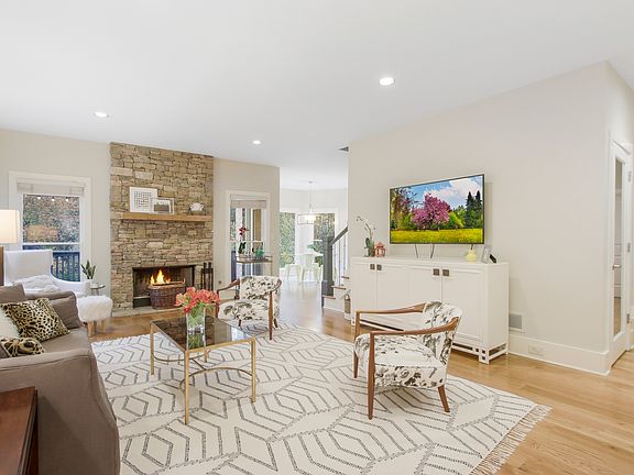 Welcome to the heart of Roswell! This gorgeous white-washed 4 sided brick home has space for everything and a magnificent backyard. This 5 bedrooms 4.5 half bathroom home has a master on main and a gorgeous full finished basement. The Master suite features tray ceilings with private access to the back deck. The master bath has an open shower and a freestanding soaking tub. The closet is outfitted with a designer closet system. Designer interior paint, hardwoods throughout the main floor, and lots of windows letting in natural light into every room throughout the day. Open kitchen that features a breakfast bay area with deck access and full windows overlooking the backyard. Ample cabinet space and a built-in buffet, walk-in pantry, granite countertops, and stainless steel appliances. A convenient mudroom with direct access to the laundry room and sink. The second floor features 2 oversized bedrooms with a Jack-n-Jill bathroom shared with a large bonus room that can be used as a flex space for a media room or a playroom, and optional loft office/homework space. Fully finished basement, with an in-law suite, wet bar, and screened-in porch with a double-sided fireplace. The spacious basement area has one full bedroom and full bath with other flex rooms for a home gym or office. The deck has been freshly painted and has ambient lighting. Lush backyard with creek and stunning custom-built stone fire pit. Located only minutes away from downtown Roswell, the 400, best entertainment and shopping, with desirable school districts.
