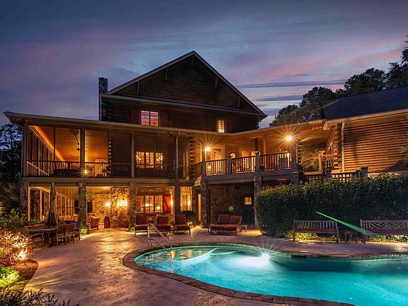 Experience tranquility and luxury lake living in this extraordinary custom home with an incredible 420 feet of water frontage on Lake Oconee. This masterpiece, designed by architect Barry Light and built by one of Lake Country’s finest builders, Jones and Jones Premier Builders, sits on an acre of prime lakefront property. This beautiful home boasts over 7,900 heated/cooled square feet and totals over 11,000 square feet under roof, including the spacious porches. The functional floor plan spans three levels, all accessible by elevator. Perfect for large families and entertaining, this fantastic home is also ideal for corporate retreats. The stunning grounds feature a koi pond, spacious outdoor deck and expansive patios, picturesque pool, gorgeous gardens, and sitting areas along the water. The expansive 16 x 80 foot screened porch has floor to ceiling retractable glass doors and includes swing beds, dining area and living area to welcome the outdoors. The vast main level is open with wooden beams crafted from imported logs, spacious great room with masonry fireplace and bar with wine fridge. The dining area can set up to 24 guests. The large kitchen is a Chef’s dream offering commercial grade Viking appliances, two dishwashers, and Sub-Zero refrigerator and freezer. The large open shelf pantry features an additional full Sub-Zero refrigerator and full freezer. There is an oversized grilling deck with a spacious sitting area overlooking the pool. The owners suite is a work of art with gorgeous beams and access to the porch. The second floor walkway overlooks the stunning great room, and four bedroom suites await, including a bunk room that sleeps six people. The terrace level is a wonderful gathering place featuring a full bar with refrigerator, dishwasher and ice maker, billiards and game room, spacious family room with fireplace, media room, sauna, and a large office that can be used as another bedroom, two full bathrooms, second laundry room and another refrigerator for drinks poolside. Access the expansive lower level covered porches and outdoor living area to enjoy conversations lake side, or walk to your private boat dock to enjoy the sunset. A sight to see is the osprey nest on the property. Nestled near The Ritz-Carlton and all the amenities of Lake Oconee, this is more than an extraordinary lake home – it's a retreat into priceless time spent with family and friends.