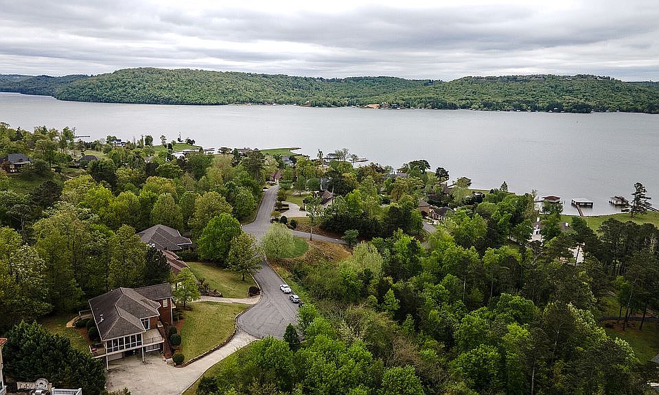 Reduced! No price like this with a view! This is the deal you have been waiting for. Gorgeous unobstructed panoramic views of Lake Guntersville and the river bridge. Situated on a cul-de-sac lot in beautiful Gunters Landing. This home has a lovely open living area featuring wood floors, wood ceiling beams and built in bookcases. There is access to a side screened porch and open deck facing the water. Dining room and Master bedroom have awesome lake views. Large master bath with 2 walk in closets. Kitchen has island, new range and microwave w/oversized breakfast area. Downstairs there are 3 bedrooms, 2 full baths as well as a storage room and gathering room. 2 Car garage.