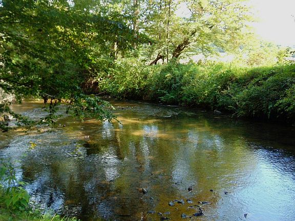 CREEKFRONT! TROUT FISHERMAN'S PARADISE! Enjoy 261 feet of frontage on noisy HEMPTOWN CREEK. FISH this trout laden creek right from the DECK, you can't build them this close anymore! Full of character and charm, including magnificent STAINED GLASS WINDOWS throughout! Master on main AND upstairs. HARDWOOD floors, SPACIOUS kitchen, WOOD BURNING STOVE in the dining room, large LOFT area, laundry on main floor AND in partially finished basement. Additional wood burning furnace in basement. Perfect for full time living, mountain get away or income producing rental property. Previously on successful rental program.