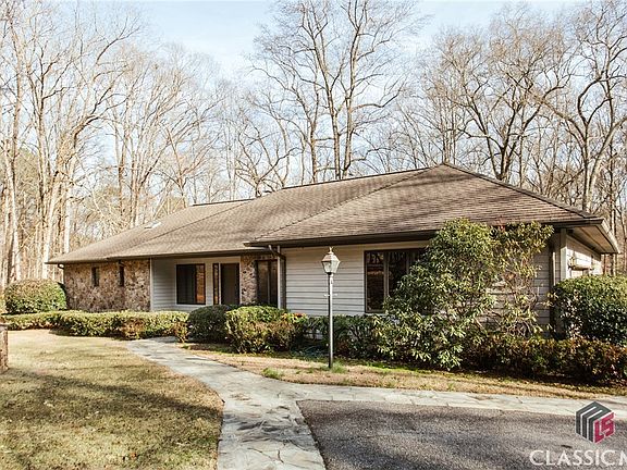 Set on four beautiful acres, this contemporary home has amazing views and all the privacy you need while being minutes from Five Points. Crystal Hills provides an Athens address in Oconee County and is one of the most sought after neighborhoods. This well built, solid construction home has beautiful stonework and refined, contemporary look. Both living areas feature floor to ceiling stone fireplaces and fantastic views. The spacious kitchen and living room overlook the flat backyard and beautiful scenery which make it perfect for entertaining. A two car garage and ample parking are a plus. The extra large laundry room has enough room for additional storage or lockers to stow items you want out of site. The basement includes a large bonus room (not counted in the square footage) that has central heat and air, but not fully finished. It is the perfect space for a in-home gym or it can be finished out for more living space. Hollyberry Lane is a must see and with a few special touches could easily be your families dream home!