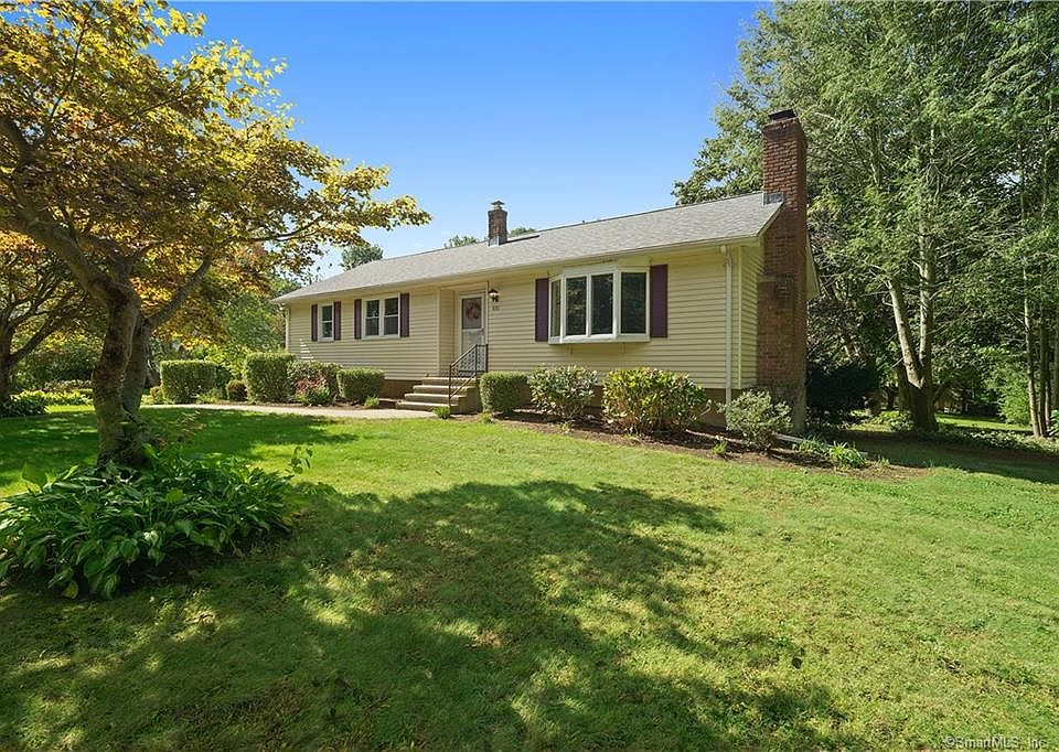 COUNTRY SETTING offers ONE FLOOR LIVING Nicely maintained 3 bedrooms, 2 full and 1 half bath ranch style home sitting on a beautiful 1.39-acre level lot. Hardwood flooring in the living room and bedrooms, a wood-burning fireplace for those colder New England months. The room off the kitchen can function as a dining room or home office and offers access to an upper deck overlooking a peaceful and private backyard with beautiful gardens and fruit trees. There's additional living space in the finished lower level walk-out which offers a kitchen, full bath with shower and a room/den with a closet. Perfect starter home or for those looking to downsize. Minutes from Lake Quonnipaug and hiking trails and only a 10-minute drive to the historic town green, shopping, restaurants and commuter rail. Recent upgrades include a new roof (2020) and newer furnace, hot water heater and water tank (2017). Oil tank also replaced in 2017. Recent inspections/reports indicate passing/potable water test, passing radon tests (water & air well below action levels), and septic passed.