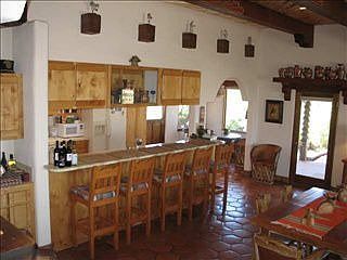 Single Family Home for sale by owner in Taos, NM 87571. This magnificent residence is exemplary of both Taos architecture and luxurious elegance. From the hand carved beams and wood latillas to traditional saltillo and talavera tile, it reflects the essence of Taos. Located in the prestegeous Weimer area, it is only minutes from town and hospital facilities while offering a country-like atmosphere. The 3 acre corner lot is secured by split rail fencing and 2 sets of solar powered wrought iron gates. 360 degree views reflect not only the city lights of Taos, but also unrestricted mountain views 60 miles away. This custom designed home will offer you the peace, tranquility, soul and spirit of Taos, and must be seen to be appreciated