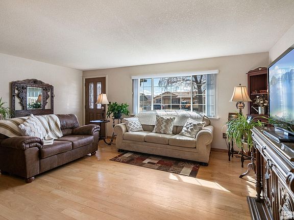 Welcome home to this beautifully maintained move-in ready gem! Nestled in a quiet neighborhood, this delightful 3 bedroom, 2 bath, 2 car garage home has been updated with newer roof, windows, furnace, water heater & air conditioning. As you step inside, you are greeted with plenty of natural light showcasing the hardwood flooring which extends throughout the comfortable living areas & bedrooms. The kitchen & baths feature tile flooring. Stainless steel appliances, including a refrigerator are included., Laundry hookups are conveniently located inside the house and also in the attached garage… it is your choice- washer and dryer included. Outside, the fully landscaped front and backyards are complete with automatic sprinklers. Additionally, a handy storage shed in the backyard provides ample space for storing all your outdoor essentials. The numerous updates, along with its impeccable upkeep, show this home exudes quality and care at every turn. Don't miss out on the opportunity to make this bright and cheery home your own – schedule a viewing today and prepare to fall in love!