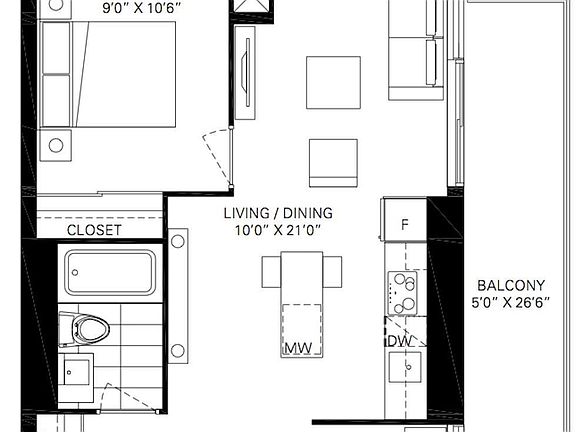 This is a 1 bedroom, 1.0 bathroom, apartment home. This home is located at 1030 King St W #410, Toronto, ON M6K 0B4.