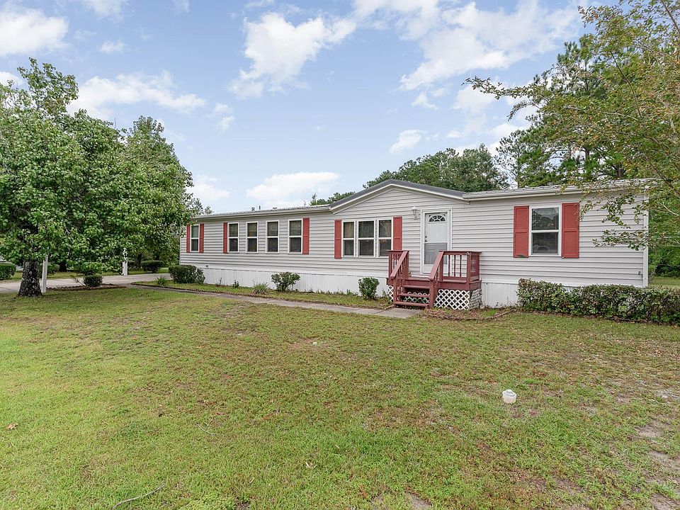 Situated on one of the most tranquil lots in the Conway Plantation community you will be amazed at how much space this home has plus it comes completely furnished! With 3 bedrooms and 2 full bathrooms the split bedroom floor plan is not only spacious but sunny and bright with 26 windows throughout! The kitchen has enough room for hosting a culinary class and comes fully stocked with pots, pans, silverware, tea kettle and even a coffee maker! A 12x20 Carolina room overlooks the pond and would make a great office, craft or reading room. In the living room you will find it can accommodate an abundance of seating and entertainment equipment - perfect for family movie or game night. The master bedroom has an en suite bath with a soaking tub and separate shower - and check out that master closet! Meticulously maintained, this home has been recently updated with new flooring - including floor insulation and sub flooring, new kitchen cabinets, new custom counter tops, new carpeting in all the bedrooms, new kitchen plumbing, new wood framing and door jams, new vanities in both bathrooms, new front and rear entry doors. In 2017 all windows were replaced, new metal roof put on, new whole house water filter was installed along with a tankless water heater and the whole house was weather wrapped to prevent moisture from getting under the siding. There are ceiling fans throughout, a large separate laundry area and an outdoor utility shed. The driveway has an attached carport and can accommodate 6 cars easily. In the backyard you can enjoy relaxing next to the pond and roasting marshmallows over the firepit! Residents of Conway Plantation enjoy use of the community pool, clubhouse, playgrounds and grilling areas included in their land lease. Not in a flood zone! This is an absolute must see! Schedule your showing today!