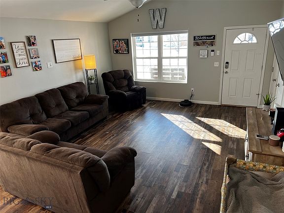 Gorgeous tri-level in Meadow Lark Subdivision with fully finished basement and large fenced yard. This beautiful home on .24 acre lot features an open concept living space with vaulted ceilings, Luxury vinyl flooring for easy care with new paint throughout and a covered front porch with porch swing. The kitchen is good sized and well appointed with a pantry, desk area, dine-n bar area and stainless steel appliances. Upstairs you will find a nice sized master suite with walk-in closet, two additional bedrooms and another fulll bath. The daylight basement features a large family room, bedroom with egress window, full bath and laundry room. Backyard has a back patio with pergola, playset, backs to trails, and has great Bridger mountain views. The garage has additional built in storage. Move in ready with plenty of space to grow!