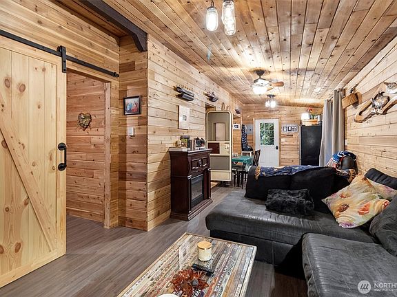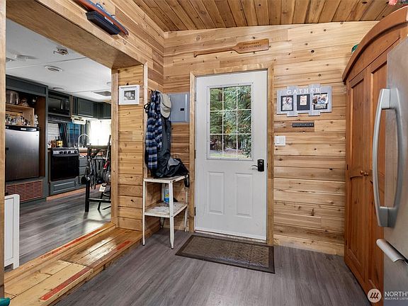 Do you love camping and entertaining? This recreational property is perfect for both! Indoors you will find two bedrooms, full bath, and a kitchen stocked with everything you need for cooking. The side addition was built in 2019 and adds 450 square feet. It has cedar lined walls and ceilings, living room, dining area, fireplace, laminate flooring, full size fridge, and pantry. Outdoors is a cedar lined bunkhouse to sleep two more. There's also a spacious gazebo with firepit, tool shed with workspace, and even a fun golf cart! This 120 day stay per year property also includes an indoor pool, clubhouse, playground, park and trails. Don't let the fall weather stop you. The property can be enjoyed year around!