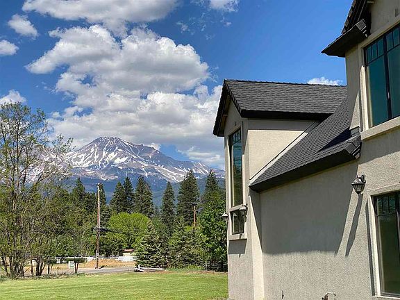 Unique property just minutes from downtown Mount Shasta. There are plans for an addition available. This one acre parcel is all about views and space. The home has 1323 square feet of living space and a 2075 square foot 4 car garage and shop. The kitchen has upscale appliances, and a generous amount of custom cabinets. There is a forced-air heating and cooling system and wood stove in the home. Also, there is an Rv hookup with power and disposal.