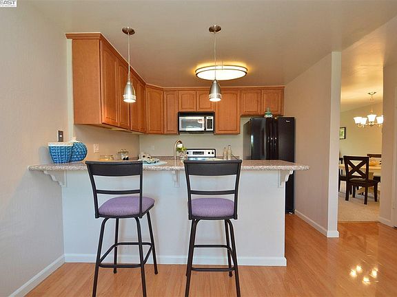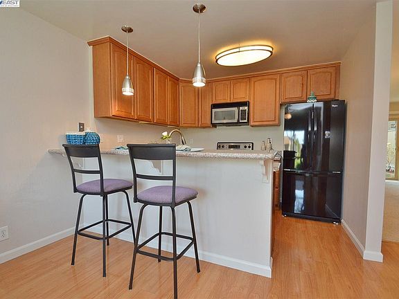 Tremendous opportunity to live in Alameda. Affordable & move in ready. This spacious and bright home is located in Alameda's coveted Bay Farm community. 3 bedrooms, 2.5 bathrooms, 2 family room spaces, and a garage for 2 cars are perfect for any buyer! Fabulous open kitchen with pendant lighting, newer cabinets, granite counters, & breakfast bar. Living and dinning room combo is great with a fireplace and 2 sliding glass doors. Peaceful backyard patio space extends your living space on nice days and evenings. Large master suite and 2 spacious guest bedrooms. Location is the also one of the highlights of this property. Enjoy the amenities this community has to offer. Close to shopping, award winning schools, golf course, public transportation, Oakland airport, and Oakland sports teams. Community pool & clubhouse, and lush common area spaces included.
