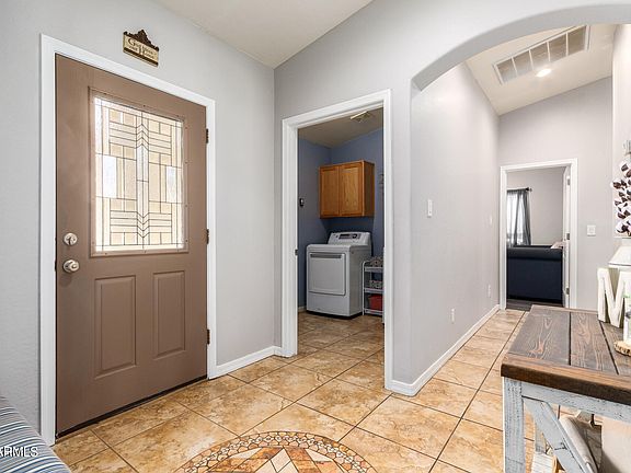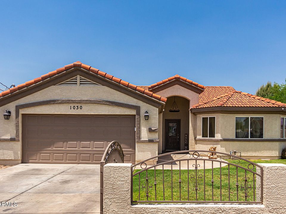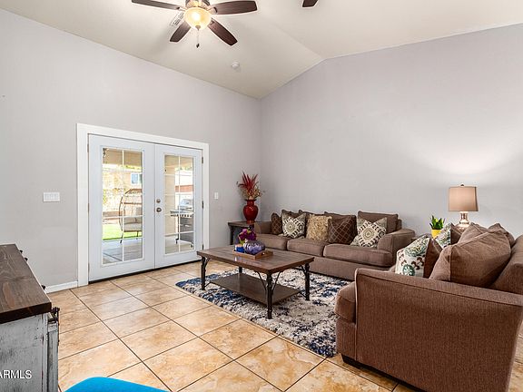 This home has a spacious front yard, a 2-car garage, and RV gate. Inside, you'll find vaulted high ceilings, tile flooring, & a well-sized living room. Eat-in kitchen, recessed lighting, plenty of white cabinets w/crown moulding, Stainless steel appliances, granite counters, & an island with a breakfast bar. The Master bedroom features wood-look flooring, a walk-in closet, & an ensuite with a granite countertop. The big backyard ready for you to hangout for fall weather has a covered patio, artificial turf, a cozy gazebo, & a seating area with a fire pit. Gazebo and fire pit furniture will stay if buyer wants to keep. Centrally located, 2.9 miles to downtown's Footprint Center & easy freeway access. Seller concessions available and home warranty paid by seller. Seller is the listing agent.