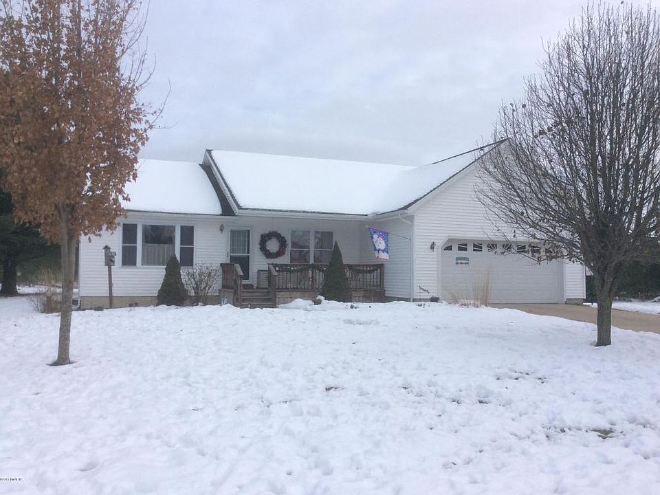 Beautiful setting in Evart...Built in 2007 Ranch home with 120x250 lot! Paved driveway to attached 2 car garage. natural gas and city utilities. 4 bedrooms, 2 baths...finished basement family room ..storage shed in back yard, 15x15 deck off back . Home is located in a newer build area of Evart. Tons of storage and room usages. Main floor Laundry and Master Bedroom. Wood vaulted Ceilings in Great Room area are stunning! Kitchen has Island with stools perfect area for entertaining.