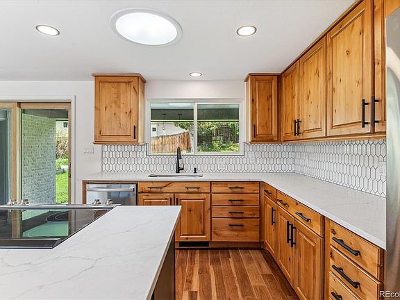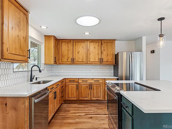 This fully renovated brick four bedroom, two bath home is within minutes of everything Golden! Featuring a brand-new upgraded kitchen, flooring, paint, lighting, garage door, driveway and a fully-permitted finished basement. This property has amazing views of both North Table and Mt. Galbraith. Everything on the main floor has been renovated, including the full bath and two bedrooms. The kitchen features a large island for entertaining, quartz countertops, and brand new appliances. The brand new basement is at garden level and includes two additional bedrooms, a full bathroom, laundry and a great family room with a wet bar. There is easy access to the basement from the garage that could easily be used as a rental or mother-in-law suite. The large backyard is secluded, with a large grass area, raised beds for planting vegetables, as well as a chicken coop. Minutes to Colorado School of Mines, Mounting Bike Trails, Climbing Routes, Clear Creek, and downtown Golden with its great restaurants and festivals! Homes in this neighborhood don't come available often! Make this fully renovated Golden home yours! Seller is offering a $10,000 rate buy down. Call the listing agent, Ty Scrable, @ 720-281-6783 for additional details.