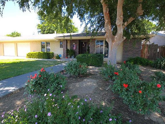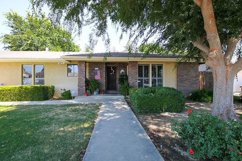 Move in ready custom north side Dinuba home in highly desirable area. This home has beautiful accents of brick throughout, two living spaces, large windows that bring the outside in, and a custom tongue and groove patio perfect for summer bbq's. Oversized bedrooms and a ton of built in storage is a dream for any family. If you need a 4th bedroom it would be an easy adjustment to make. The hall bathroom is completely updated and home has a brand new AC unit. You will enjoy the spacious layout, wide hallways, and oversized finished garage. A wonderful bonus to this amazing home is the lush and large backyard. It has mature landscaping, beautiful lacy shade trees, two patio areas, alley access and fruit trees.