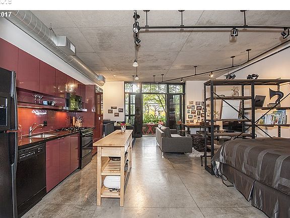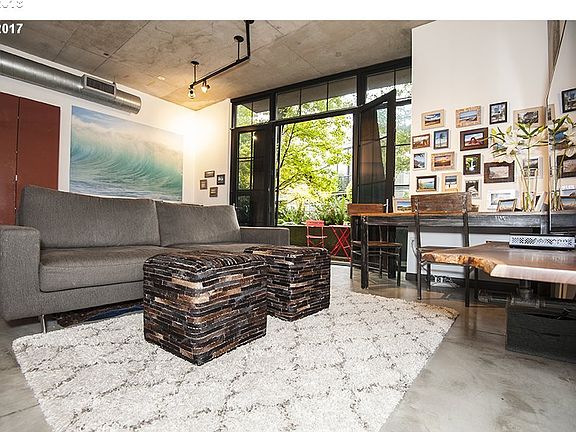 On second floor -Modern loft with personal 6x19 patio on courtyard. Industrial windows, french doors, modern cabinets, granite counters. 10 foot ceilings, poured concrete floors. Walk in closet. South facing. Deeded parking & storage. Murphy bed and island stay. Community gym and meeting/party room just down the hall. Lovely courtyard. Heart of Pearl on Streetcar line.
