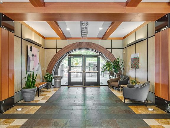 South-facing with courtyard views in the Pearl District's desirable Tanner Place building. Spacious living room with fireplace and wall of windows leading to private covered balcony overlooking courtyard. Two large bedrooms each with courtyard-facing windows; huge primary suite includes walk-in closet and tile bathroom. Kitchen features breakfast bar and stainless Kitchen-Aid appliances, including five burner gas range. Extensive hardwood floors. Monthly dues cover all utilities except electricity, including gas, hot water and internet. Ideal location across from Jamison Square Park and next to the streetcar. 99 Walk and Bike Scores, walker and biker's paradise; 88 transit score.
