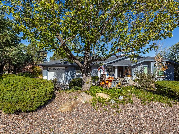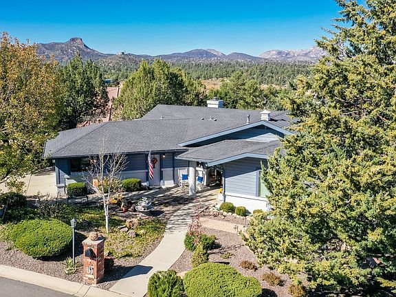 Located in Hidden Valley Ranch, this home is in the tall pines, yet just minutes from downtown Prescott. Step in the front door and take in the expansive views including Granite Mountain. Rooms are large;the country kitchen, dining room and great room will accommodate the largest family gathering. The wrap around covered deck is perfect for morning coffee or to take in a beautiful Prescott sunset. The 4 patio areas invite outdoor living any season. Inside are 3 fireplaces, solid oak floors, beautiful wood finishes, huge master bedroom suite, many built-ins, and lots and lots of storage. One-level living with one bedroom and 1.5 baths on the main level. Downstairs you will find a family room, 2 bedrooms, office/den, 1 bath, a potential craft room, and abundant storage.