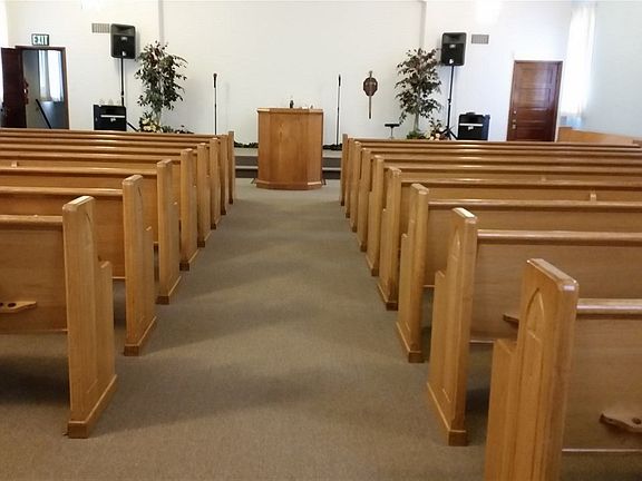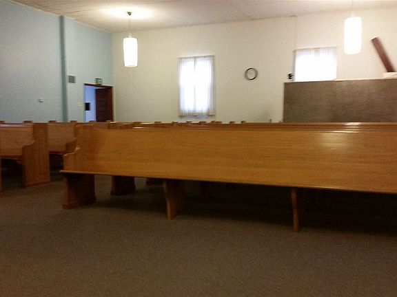 Solid as a Rock !! This Cement building is currently being used as a Church. it is Zoned Residential 1. Convert it into a Home or use it as a Church. Unique Style offers curved corners, 2 stairwells to the finished basement. Full kitchen , 2 -1/2 baths . Waiting room, 4 class rooms, 2 storage rooms. Newer carpet, 2 furnaces, Central air. Parking lot has been stoned and interior and exterior painted. Shed 8 x 10 included. Sound system and projector can be included with the pews if desired to keep it as a church or the seller will remove.This property is assessed at $135,700 Priced below its value. Total square ft is 4836 square ft. May be able to turn it into a duplex with a variance from Zoning.