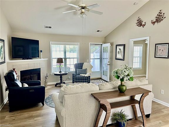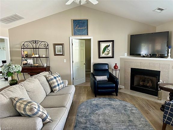 Beautifully maintained and move-in ready! This unique floor plan is different than the ones you are seeing in the area right now. Features include vaulted ceilings, a spacious foyer, and a cozy corner gas log fireplace. You'll love the split bedroom layout and the convenience of a separate laundry room. The spacious kitchen includes a pantry, and all appliances—refrigerator, washer, and dryer may remain. Numerous updates throughout the home. The primary bedroom boasts a walk-in closet, double sinks, and a separate shower & tub. Outside, the peaceful patio with a privacy fence offers plenty of room to grill and relax. Located in Davidson County-Wallburg/Ledford schools. Convenient to High Point’s restaurants and shopping, Great Location. Don’t miss out—schedule your showing today!