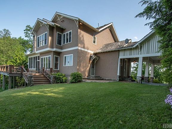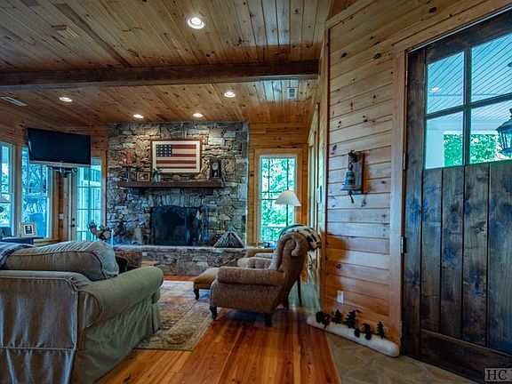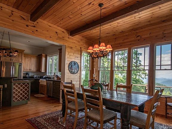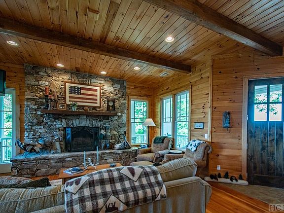 Located approximately 5 miles from downtown Highlands up a secluded private gravel road. This lovely home sits above 4100 feet elevation on 7 acres and is flanked by USFS Lands. There are trails to explore including the Bartram Trail with this great private serene setting. The house has spectacular mountain views from most rooms as well as the Carolina Room and large deck. The house is move in ready with a great floor plan, 10 foot ceilings on the main floor, 9 foot on the second, two stone fire places and heart of pine floors. 4 bedrooms, 3 1/2 baths, lovely kitchen with concrete countertops and up to date appliances. A useable yard with porte-cochre round out this happy home.