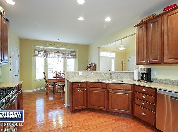 You will love this expanded Glyndon model in the ACTIVE ADULT community of Bowes Creek! This home is the perfect home for entertaining! The open floor plan on the main level boasts vaulted ceilings, hardwood throughout, updated kitchen with granite counters, stainless steel appliances and a walk-in pantry. The large covered balcony is the perfect setting for enjoying your morning coffee or brisk summer nights. The finished ENGLISH basement boasts 2 additional rooms that could be used as a playroom, craft room or guest room. Also a full bath, kitchen, family room with fireplace, workroom & large storage area. The 2-car garage has an epoxy floor and massive attic with pull-down staircase. Home also equipped with a whole house surge protector. This home does not disappoint!