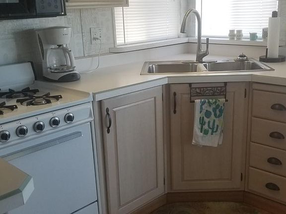 Stock the refrigerator, hang up your clothes and get ready to enjoy the good life! Fully furnished Park Model home even includes all dishes, pots and pans, cooking utensils, etc. Charming electric fireplace, two TV's, patio furniture, chiminea, Gas grill, porch swing and stack washer and dryer in the cozy Casita. Covered parking for up to 4 vehicles, privacy fencing at welcoming back patio. Furnace and AC are 2 years old. Water softener. New SS sink and faucets. Gated community offers security and tons of amenities. COME VISIT, YOU'LL FALL IN LOVE!!