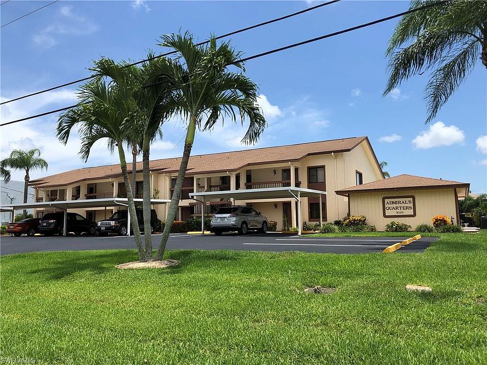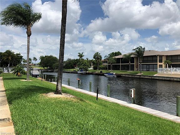 GULF ACCESS ***Highly sought-after ADMIRALS QUARTERS!!! These condos rarely come up for sale. Extremely well-maintained condo building with covered parking and great boating access with first come first serve boat slips! WALK to downtown Cape Coral and a QUICK BOAT RIDE to the RIVER! This unit is on the 2nd floor with a spacious covered and screened lanai area. Enjoy the outdoor patio on the pool deck with a great view of the water. Great for entertaining! This condo has a nice feel to it. Cathedral Ceilings that makes it feel open, light and bright. The master bedroom is large and has sliders to the lanai, also a very large walk-in closet. This is a 55+ community, so if you like quiet you will love this. The unit can come furnished (some exclusions). The fees are only $975.00 a quarter and that includes flood insurance on the building. It was re-plumbed in 2015 and the carpet has been recently replaced. Laundry is inside the unit. There are many closets inside and a storage closet outside. Guest parking is available. You will not be disappointed. This condo is spotless. This is a non-smoking complex, no smoking on the property at all. Make an appointment today before its gone!