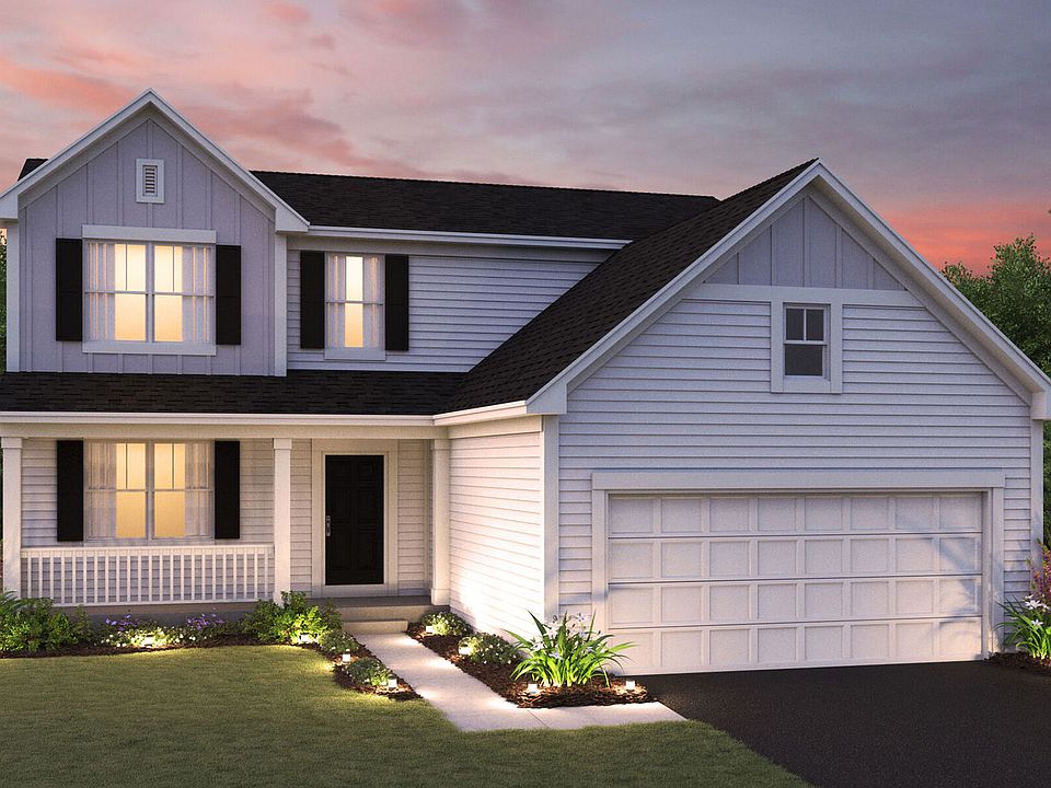 Welcome to this beautiful Clubhouse Community with Pool, Tennis Court and Playground for the kids! This Morgan is one of our most popular Smart Series floorplans, and it's easy to see why! This home features 1,815 square feet with three bedrooms, two full bathrooms, a powder room, and a two-car garage. Easy maintanence luxury vinyl plank flooring on the whole main level. Full basement with rough-in plumbing for future bathroom. located on a large corner homesite. Take a look inside! As you enter the front door, you'll arrive in a welcoming foyer area that leads to either the flex room, the staircase, or the open-concept family room and kitchen in the rear. The flex room is the ideal place to set up as a dining room, play room, home office, or anything else you can imagine! It's truly built to be useful for your exact living style. The open hub in the rear of the home is simply stunning. A family room sits behind the flex room and opens up to a grand breakfast area and kitchen. Behind the kitchen is a well-hidden nook, which leads to a powder room, as well as the dual mud room/laundry room. The mud room offers direct owner's access to the garage. Upstairs offers you three bedrooms and a large hallway bathroom. As you enter into your owner's en-suite, you'll enjoy your very own oasis with a large walk-in closet and a signature bathroom with large walk-in tiled shower, linen closet, and double bowl vanities. It's no wonder that the Morgan is one of our best-selling homes! Lot 1608 *Photos and Virtual Tour are of a model home, not subject home*