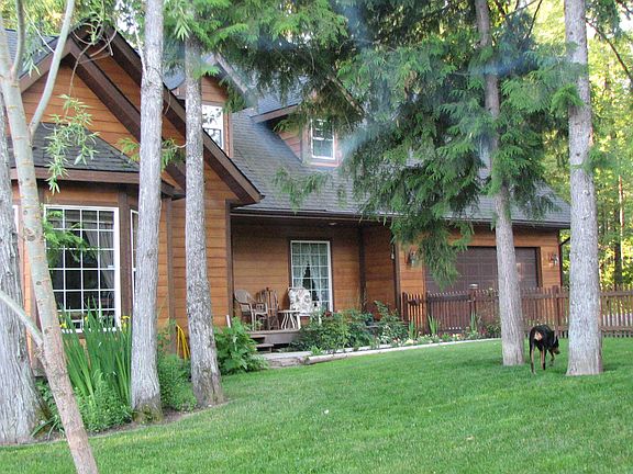 Beautiful 4 bedroom, 2 bath home secluded in the forest in the town of Ponderay. Fenced and landscaped surrounded by woods. Huge view of the mountains to the east with unobstructed lawn in front. Open vaulted ceilings in kitchen, dining and living rooms, unique dormer windows exposing large cedar trees. This property is close to everything, yet has a distinct country feel. Don't forget the huge bonus room about the garage that could be used as an add'l bedroom, hobby or play room for the kids. Also, the property is near the trail system for hiking, biking and walking all the way to City Beach in Sandpoint or Ponder Point.