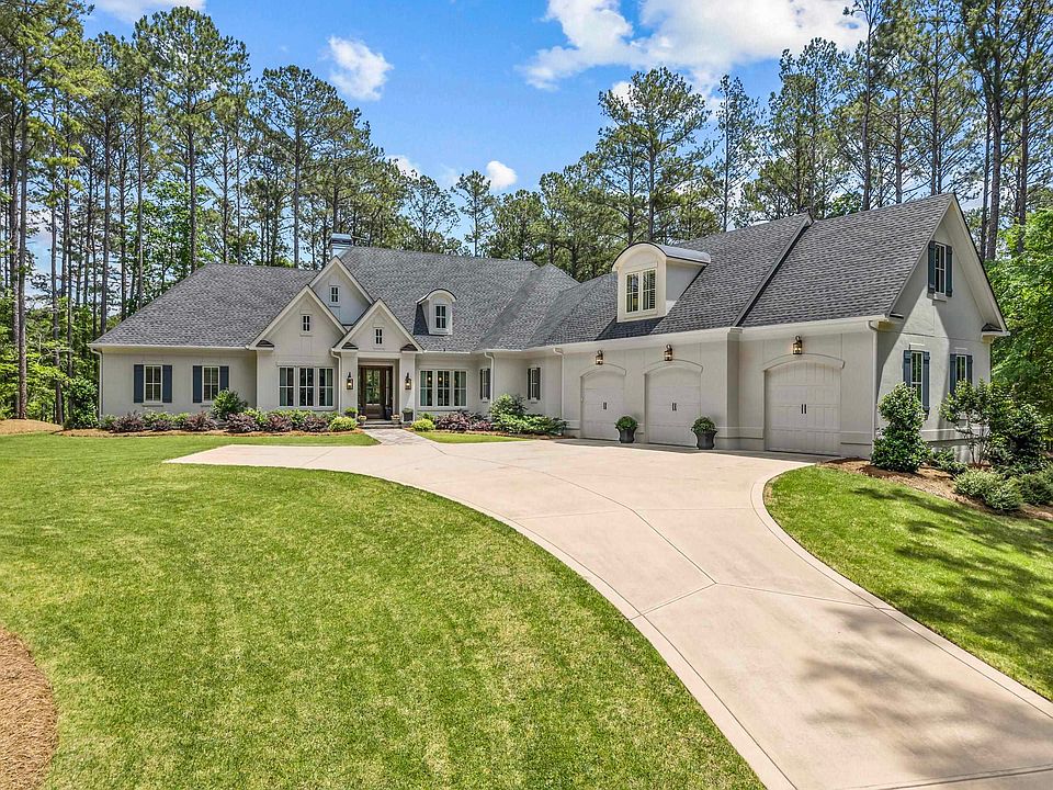LIKE-NEW, MOVE-IN READY LUXURY CUSTOM HOME PERFECTLY POSITIONED ON THE 7TH HOLE OF THE OCONEE COURSE. Offering the perfect ranch, one-level living, this 2022 home features a long, private driveway and is set on a beautiful 1.46 acre golf course lot in Reynolds Lake Oconee. Ideally located within minutes to the Lake Club, Ritz Carlton, Creek Club and Lake Club security gate, this stunning home offers three suites on the main level with a private en suite retreat above the three car garage. Step inside to 10 foot ceilings and an open layout that feels instantly spacious and inviting. The centrally located living room features vaulted ceilings, wood beam accents, and a seamless flow into the dining area and kitchen. Just beyond, iron French doors open to a screened in patio with a shiplap accent wall, an ideal space to relax or entertain year round. The true chef’s kitchen includes a top of the line appliance package, featuring a Thermador French door refrigerator that blends effortlessly with the custom cabinetry. An inviting quartz island anchors the space, perfect for casual dining and hosting. A spacious scullery offers additional prep and storage, complete with a prep sink and dedicated ice maker. For effortless entertaining, a wet bar with wine cooler is conveniently tucked beside the kitchen. Just off the kitchen, a keeping room with a stacked stone gas fireplace offers a winddown spot for quiet mornings or evenings. The private primary suite is thoughtfully designed with separate his-and-hers bathrooms, each featuring its own vanity and water closet, connected by a shared shower. Two additional en suite guest rooms on the opposite side of the home provide comfort and privacy. A sophisticated office, beautifully designed laundry room, built in workspace, powder bath, and mudroom complete the main level. A spacious en suite bonus room with three built in bunk beds offers flexible accommodations for guests. Beyond the golf course setting, a dedicated grill porch with built in gas grill and granite countertops sits just off the kitchen and keeping room for easy outdoor cooking. In the backyard, a custom stone firepit serves as the centerpiece, perfect for gathering and unwinding. The grounds are equipped with an irrigation system for convenience. Located minutes from the Ritz Carlton, with lake access, and club amenities, this home offers convenient access to golf, dining, and walking trails. Membership available.