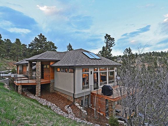 Modern & Sophisticated Genesee Estates Home! Spectacular Residence with Bold Design and Unparalleled Finishes! Foyer is like walking into an art gallery with its architectural staircase and wall space for your art & collectables. Fabulous great room with a wall of windows, a fireplace for ambiance, polished tile floors for a clean & crisp look and definitely the focal point of the home. Off the great room is access to the outdoor deck to enjoy the views as well as a great place to take the party outdoors. Stunning designer kitchen with top of the line finishes. Main level master bedroom with spa like bathroom. Lower level features walk-out family room, studio space plus two bedroom suites with private bathrooms. There is also a covered patio to enjoy the fresh, Colorado outdoors! Genesee Estates is gated luxury home subdivision located 25 minutes from downtown Denver and around an hour from Summit County. Truly foothills living at its best!!