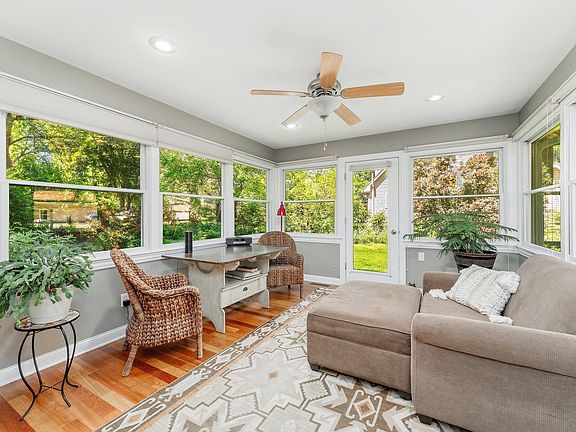 This is one of those unique houses in Vermillion that make you move when you had no plans to move. This Cape Cod style home is located on a park-like corner lot, was completely remodeled around 2005 and it still looks gorgeous and modern today. In addition to the white kitchen cabinets, cherry wood floors and Corian countertops, a 14' x 13' sunroom addition was added that provides a panoramic view of the landscaped backyard through the eight windows and glass door. Just inside the sunroom and connected to the kitchen is a den with fireplace for a cozy spot to relax and read a book. On the other side of the kitchen is the formal Dining Room with bay window that opens up to the GORGEOUS Living Room with views of the park-like front yard. Upstairs there are four bedrooms and one bath that was remodeled in 2012 with tile surrounding the tub and modern tile floors. The basement has tons of shelving for storage and a finished Family Room area as well as a workshop. The roof was replaced in 2023. Don't miss this one!
