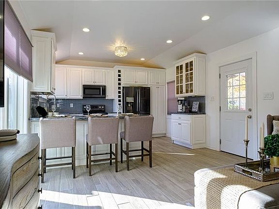 This 3 bedroom 2 bath home has many updates including an open vaulted kitchen/ family room with Black SS appliances, a beautiful custom-built kitchen, cabinets with a built-in wine rack, trash, and recycle bins. New deck off the family room to grill dinner and the additional deck below for entertaining. Large flat back yard. State of the art playground almost right across the street with ballfields, basketball court, playground with water park, deck hockey and walking trails, Finished basement with plush carpet and glass block windows. First-floor laundry room, newer roof, newer gutters, garage door, and privacy fence. Custom blinds in the family room and kitchen. 4+ parking spaces in driveway.