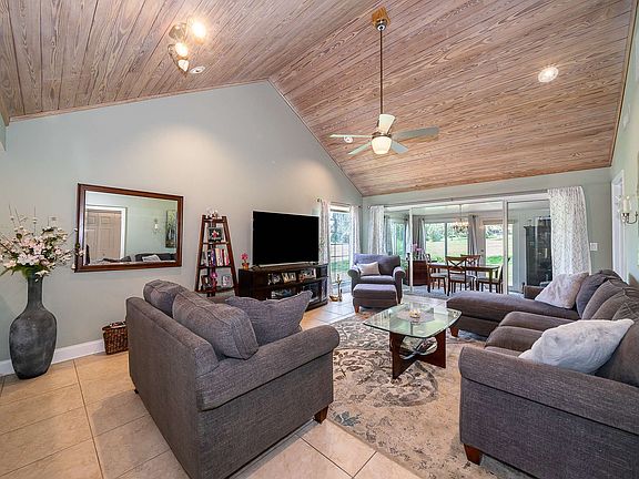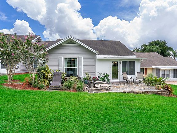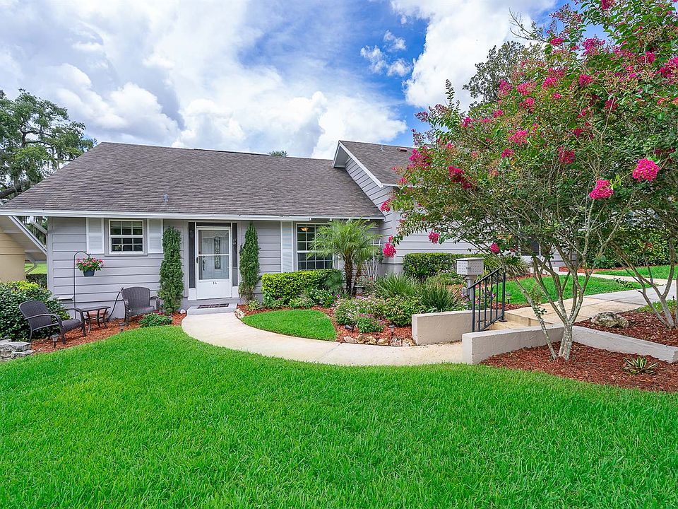 Cuter than a button! This adorable villa is tucked away in the beautiful landscape of Errol Club Villas. Come see this 2 bed 2 bath end unit with a spectacular view! Walk down the winding sidewalk and find a beautiful entry with a cozy sitting area. The home is nicely updated and has neutral tile throughout. The kitchen is bright and cheery with stainless steel appliances, solid surface counters and plenty of cabinets. The great room has a gorgeous pickled pine tongue and groove vaulted ceiling with ceiling fan and recessed lighting. The master bedroom is spacious with crown molding, ceiling fan and ensuite bath. The second bedroom has it's own bath with a pocket door in the hall to make it a private suite. The wonderful Florida Room in the back lets in lots of light and has great views of the community. Out back there is a gorgeous flagstone patio with a view of a bald eagle nest, wandering crane families and an abundance of wildlife. Updates to the home in the last three years include all new woodwork including baseboards, crown molding, doors, door frames, knockdown ceilings, all lighting, stainless steel appliances, toilets, barn door on master bath, faucets, ceiling fans. The home has been replumbed and the electric updated. The Villa's exterior was just painted and the front and back yards are just lovely. It's a great oasis away from everything. Errol is just off the 429 making this a convenient location with easy access to major roads. This home needs to be seen to be fully appreciated, it's charming and unique. Come take a look.