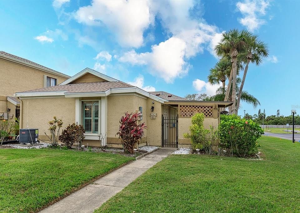 This unit's location is everything! It's a great corner unit with a spacious yard around the property, giving you the feeling of having your own yard while still enjoying townhome living. When you enter through the gate, there's a storage closet on your left and a pleasant outdoor sitting area to enjoy the Florida weather. As you enter the first door, you'll notice a wall that can be removed to create more open-air space. The previous owner used it as an extra room, but the potential for alteration is there. The unit is tiled throughout and features an open floor plan with a split layout. The kitchen was upgraded years ago with hardwood cabinets and quartz countertops, which still look fantastic. Schedule a showing today!