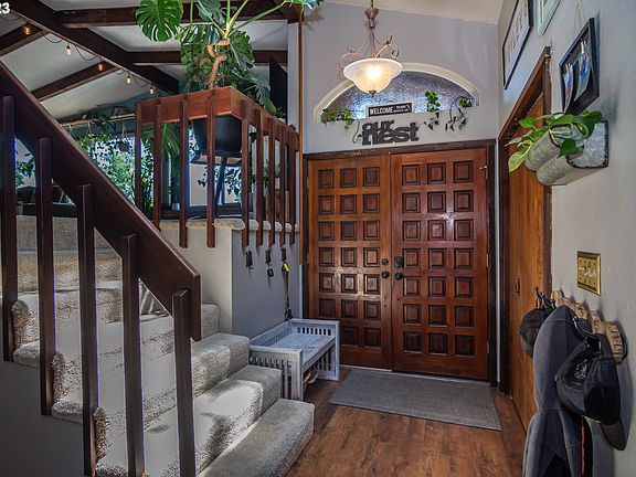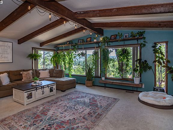 Spacious and eclectic home in desirable westside Roseburg. This 4 bedroom, 3 bathhome will capture your heart with it's vaulted ceilings and open beams with large picture windows that stream in natural light. Offers breathtaking views of the city and surrounding mountains. Kitchen/dining area open to the expansive deck. Stellar for outdoor living and entertainment. Primary Suite features large, deep soaking tub and separate shower. Privately tucked away from other bedrooms. 4th bedroom is situated inside guest suite attached to the home with a separate enterance. Perfect for additional family members, guests or bnb rental. Laundry room with great storage space and utility/mud room. Large fenced back yard, with above ground pool and separate fencedarea/dog run. Excellent for all your people, plants and pets. Oversized garage has shop and storage. Nice wide driveway and YES! there is a spot for your RV or boat. Look no further your dream home is here