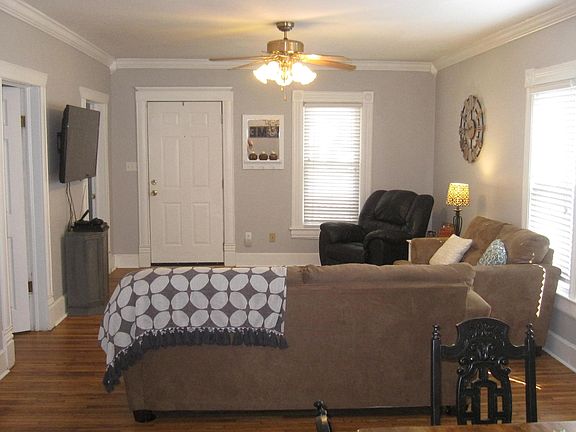 Charming bungalow home that has been updated with a modern flair. This beauty has been very well taken care of and it shows! Every room has all new paint as well as the exterior shutters and front porch pillars. There are 3 bedrooms, 2 full baths, 1 Car detached garage, a large back yard enclosed with fencing and a storage shed/workshop. There is a large living/dining room, an eat in kitchen, laundry room, recently refinished original hardwood floors, new carpet in one bedroom and hardwoods in the other two, both bathrooms have been updated. Most of the windows aren't original. This home shows perfectly and is ready for its new owners!