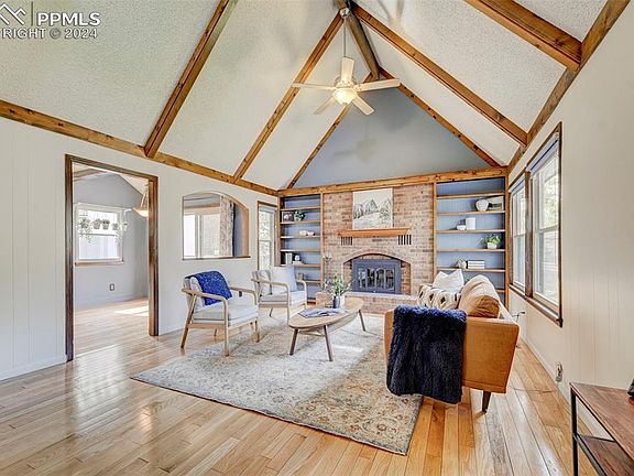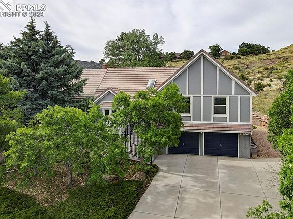 Discover your dream home nestled in the picturesque foothills of Colorado Springs. This 5-bed, 4-bath home located in the highly coveted Rockrimmon neighborhood of Comstock Village, offers breathtaking mountain views on a quiet cul-de-sac blending rustic charm with modern convenience. The private backyard, backing to 6+ acres of open space, is a nature lovers dream, featuring rock formations with frequent visits from local wildlife, and a large patio for relaxation or entertaining! Significant improvements throughout, including a fully remodeled kitchen, master & secondary baths, newer furnace and AC, finished basement & new front entry & concrete roof. This spacious floor plan boasts an open/bright family room with vaulted ceilings, cozy fireplace, and beautiful hardwood floors. The gourmet kitchen features stainless steel appliances, granite countertops, stone backsplash, upgraded cabinets w/pullouts & soft close drawers! Dining nook includes additional butcherblock counter space and large pantry/storage. Master suite is a tranquil oasis with an attached updated bathroom and 2 closets. 2 additional south facing bedrooms provide lots of sunlight and beautiful mountain views. 4th bedroom in loft area provides lots of privacy and lovely views of the private open space in back. All bedrooms are generously sized, providing ample space for family or guests. The finished basement includes a versatile rec room with fireplace, perfect for a home theater or gym, a 5th bedroom and large storage room. Oversized garage at 760 SF provides a large recessed area perfect for storage, workshop or motorcycle. Driveway allows room for parking up to 3 cars with additional parking on side of home with room for small RV or boat. Located in a top rated District #20 neighborhood, this home offers easy access to hiking trails, hospital, schools, shopping, and all the amenities of this beautiful city. Experience the best of Colorado living. Schedule your private tour today!