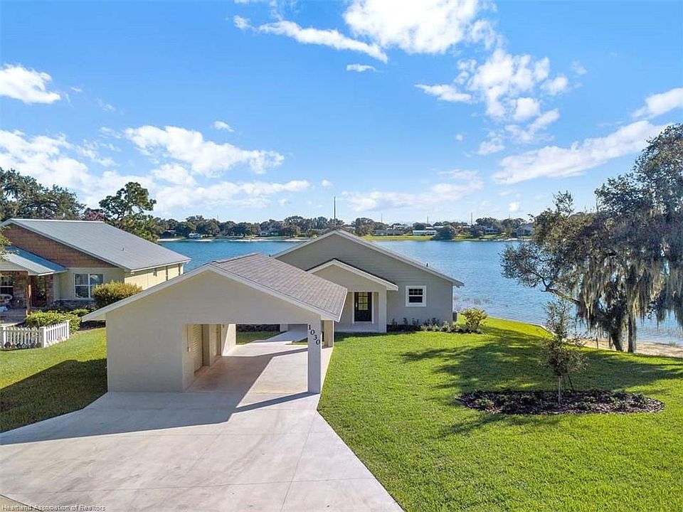 Active listing with a KICK OUT CLAUSE TO A CONTINGENT CONTRACT. Don't miss out on this BRAND NEW HOME OVERLOOKING LAKE ISIS ~ a beautiful 53-acre clear freshwater lake. Private too, w/no public access for added peace & tranquility. This Sedlock & Heston 3/2 split plan home offers an open concept kitchen/great room w/white real wood cabinetry w/crown molding, granite counters, spacious breakfast counter, stainless steel appliances +bar sink & built-in serving area w/space for a wine cooler. Enjoy the master suite w/his & her walk-in closets, separate his/her vanities, walk-in shower, tub & private water closet. 8" vinyl plank flooring throughout (tiled baths), crown molding in living areas, sliding glass doors to the 40' screened lanai; offering a fabulous lake view. Other features include: sea wall, 7x19 covered front porch, well-irrigation, nicely landscaped/sodded lot and a detached carport w/air-conditioned laundry & storage garage. Owner financing available with 20% down.