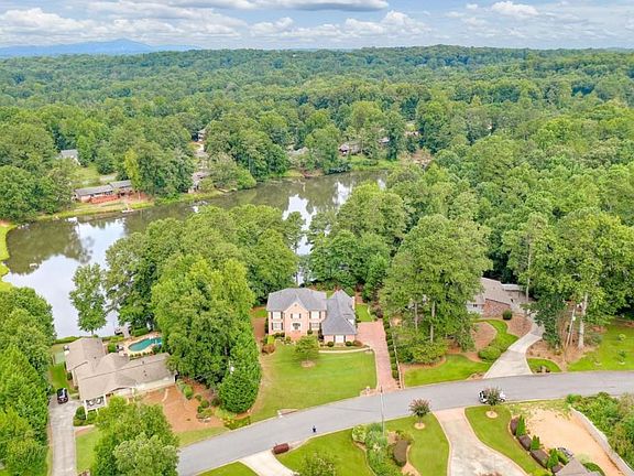 Spectacular setting with 193 feet of lake frontage offering panoramic views of beautiful Lake Charles. Large private dock - grab your kayak or canoe - and plenty of walkable shoreline for fishing, wildlife watching or to simply enjoy the tranquility of this unique and special property. First time on market, the custom built 4-sided brick home has timeless charm and appeal. Grand entrance foyer, large rooms with high ceilings, 2 master suites - one on main level, paneled fireside family room opens to kitchen and light filled sunroom. 2-car garage opens to laundry room with hallway mudroom space, additional full size garage is convenient to the driveway and lakeside backyard. Light-filled kitchen has newer appliances and sweeping views of the lake.Light filled with extensive lake views, the terrace level has an oversized finished room for media or games and a large office or bedroom. There is stubbing for a full bath and two huge climate controlled unfinished storage spaces with workshop areas galore.The almost 2 acre setting has been professionally landscaped with multiple outdoor spaces amidst privacy and parklike plantings. LOCATION!! Take your golf cart to Canton Street in Roswell for shopping and restaurants. Roswell City Park and great nature trails minutes away.Home was originally built to exacting quality and superior craftsmanship. Unique opportunity to renovate and update a well maintained home with great bones - and in a setting that is almost impossible to find today in this sought after Roswell area.